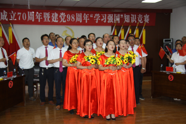 为庆祝建党98周年暨新中国成立70周年,7月1日晚,集团公司党委在五楼会议室举办了系列庆祝活动。集团公司党委班子成员李玉明、张菊萍、徐宪国及公司在岗全体党员、部分员工近八十人参加活动。