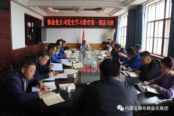 读书班上,公司结合实际认真谋划,突出重点精心部署,集中组织学习了习近平总书记对内蒙古工作重要讲话重要指示批示精神、习近平《论中国共产党历史》《毛泽东邓小平江泽民胡锦涛关于中国共产党历史论述摘编》《习近平新时代中国特色社会主义思想学习问答》《中国共产党简史》等规定学习篇目。在扎扎实实把“规定动作”做到位的基础上,邀请阿右旗党校老师张耀华、池星乐进行了《从中国共产党人的精神谱系领悟党的百年历史》《筑牢中华民族共同体意识》2场专题辅导。党委理论中心组召开专题研讨会,围绕党史学习教育指定书目进行专题研讨。组织广大党员干部观看了微纪录片《百炼成钢  中国共产党的100年》和中共党史专题讲座《中国共产党为什么“能”》。广大党员还利用业余时间,自学了雅盐微信公众号发布相关学习内容。